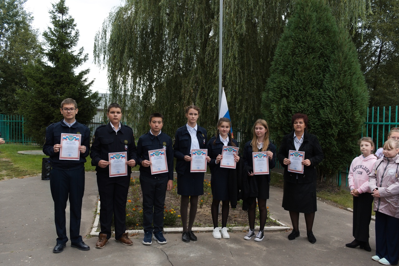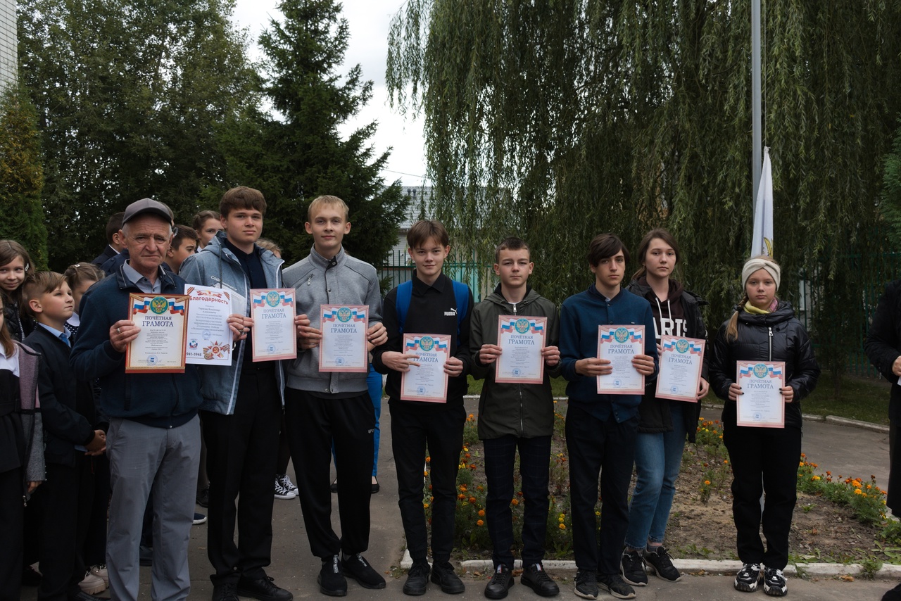 На линейку были приглашены 5-е классы и команды победителей и призёров областных и районных конкурсов "Зарница", "Школа безопасности" и "Лучшая дружина юных пожарных".