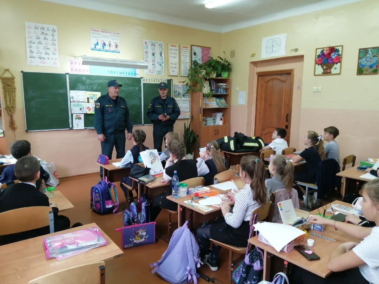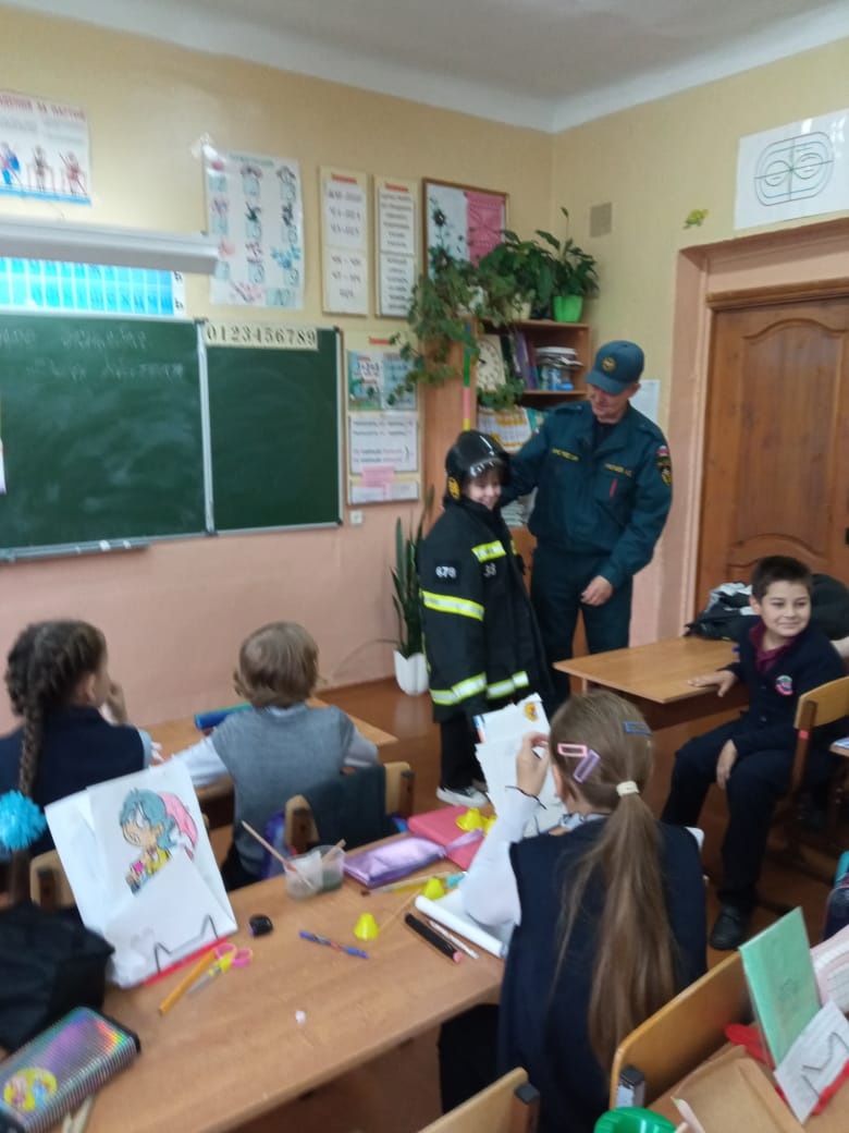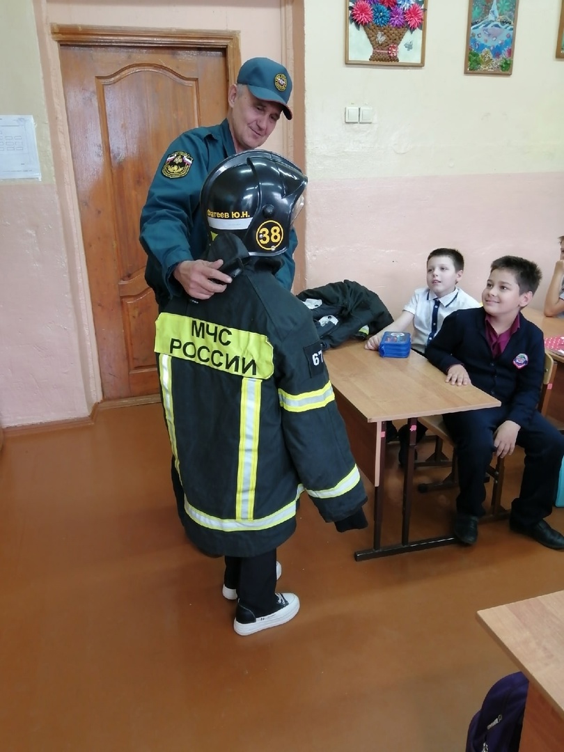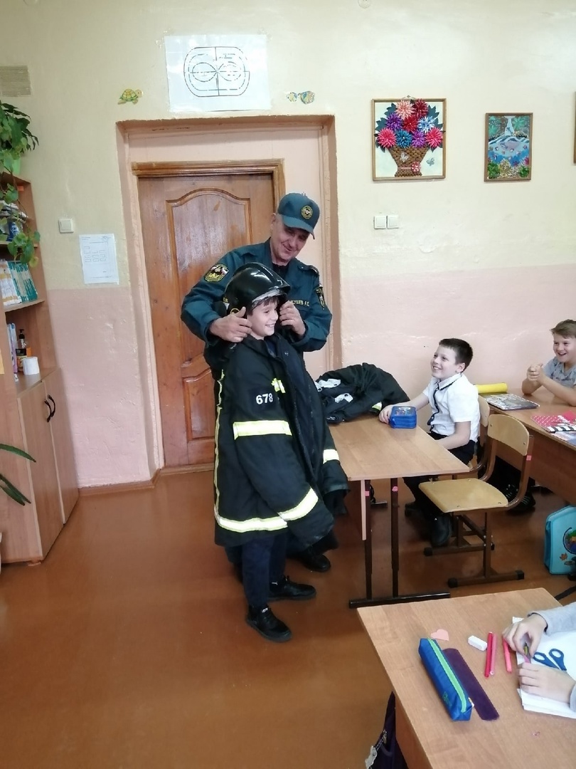Сегодня сотрудники МЧС Урицкого района посетили МБОУ НСОШ №1 им. Н.И. Зубилина и рассказали учащимся о своей работе и системе гражданской обороны. Ученики примерили часть обмундирования настоящего пожарного.
