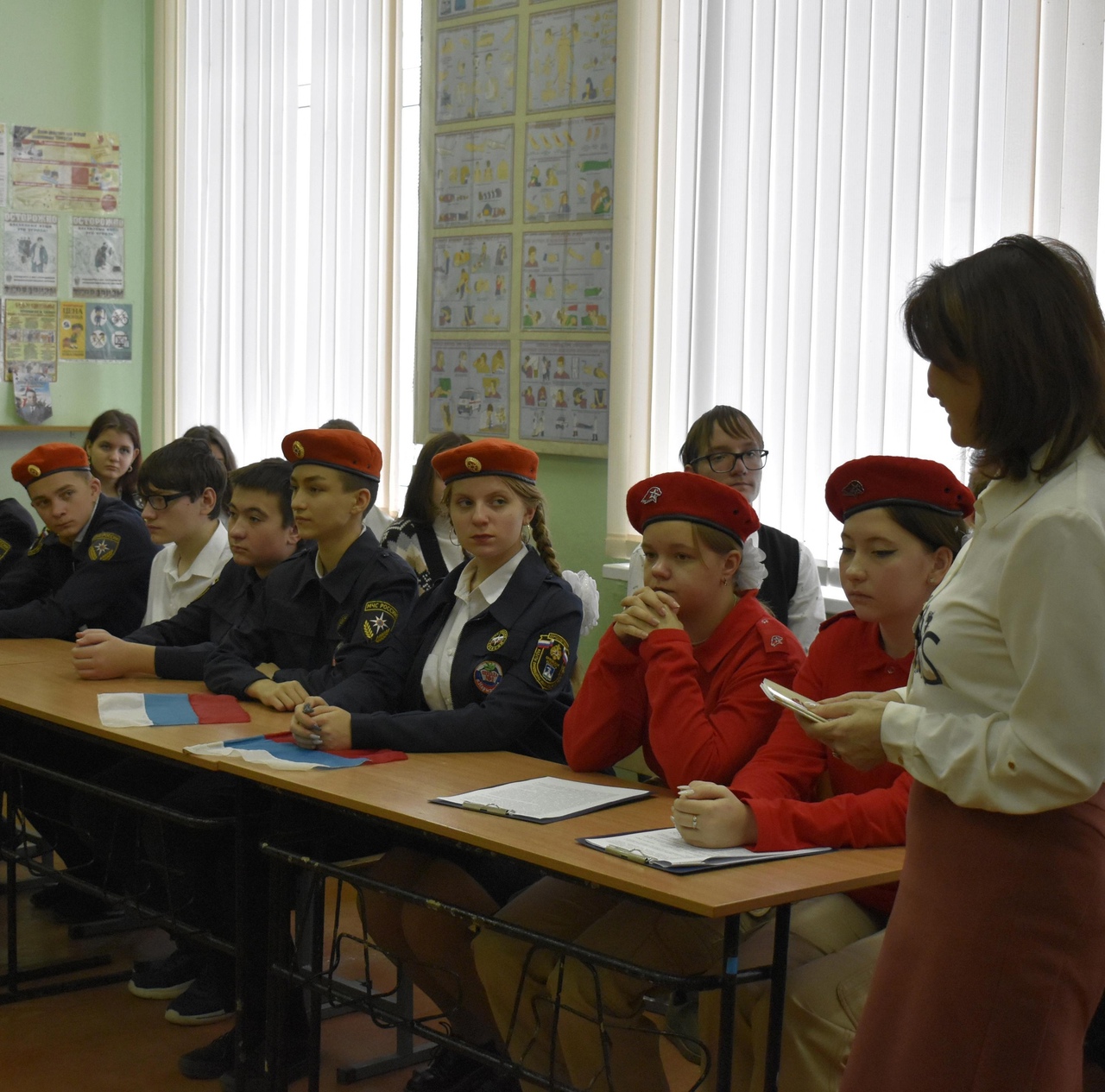 В мероприятии приняли участие обучающиеся 9-х классов, педагоги, руководитель школьного отряда Юнармии Кирьянова Л.Н., директор школы Шакиева И.М. и почетные гости – специалисты отдела образования администрации Урицкого района Амельченкова О.А. и Вальницкая Е.Г.