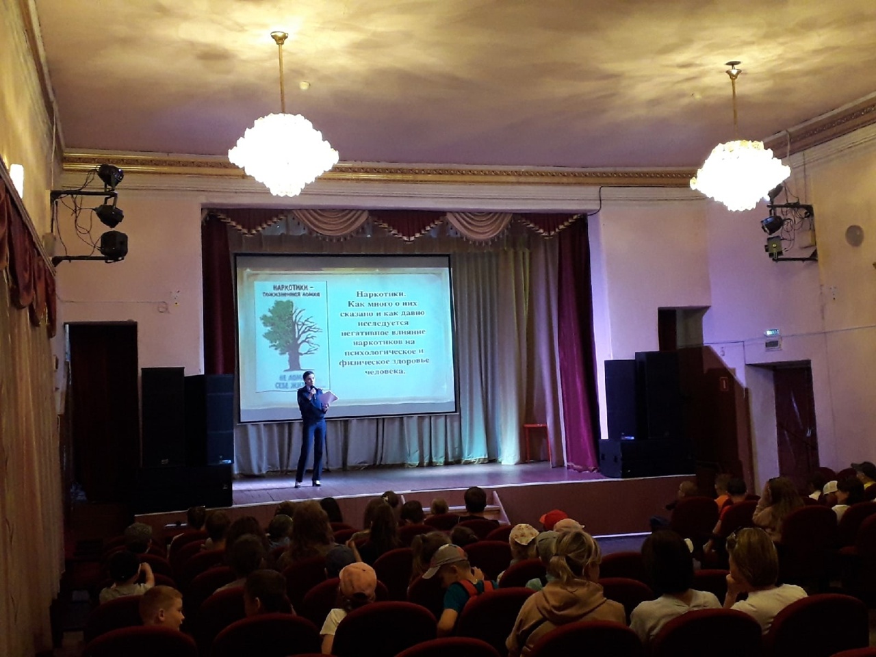 Воспитанники лагеря "Солнышко" МБОУ НСОШ №1 им. Н.И. Зубилина посетили в доме культуры беседу с участием инспектора по делам несовершеннолетних "Прежде чем сделать - подумай".